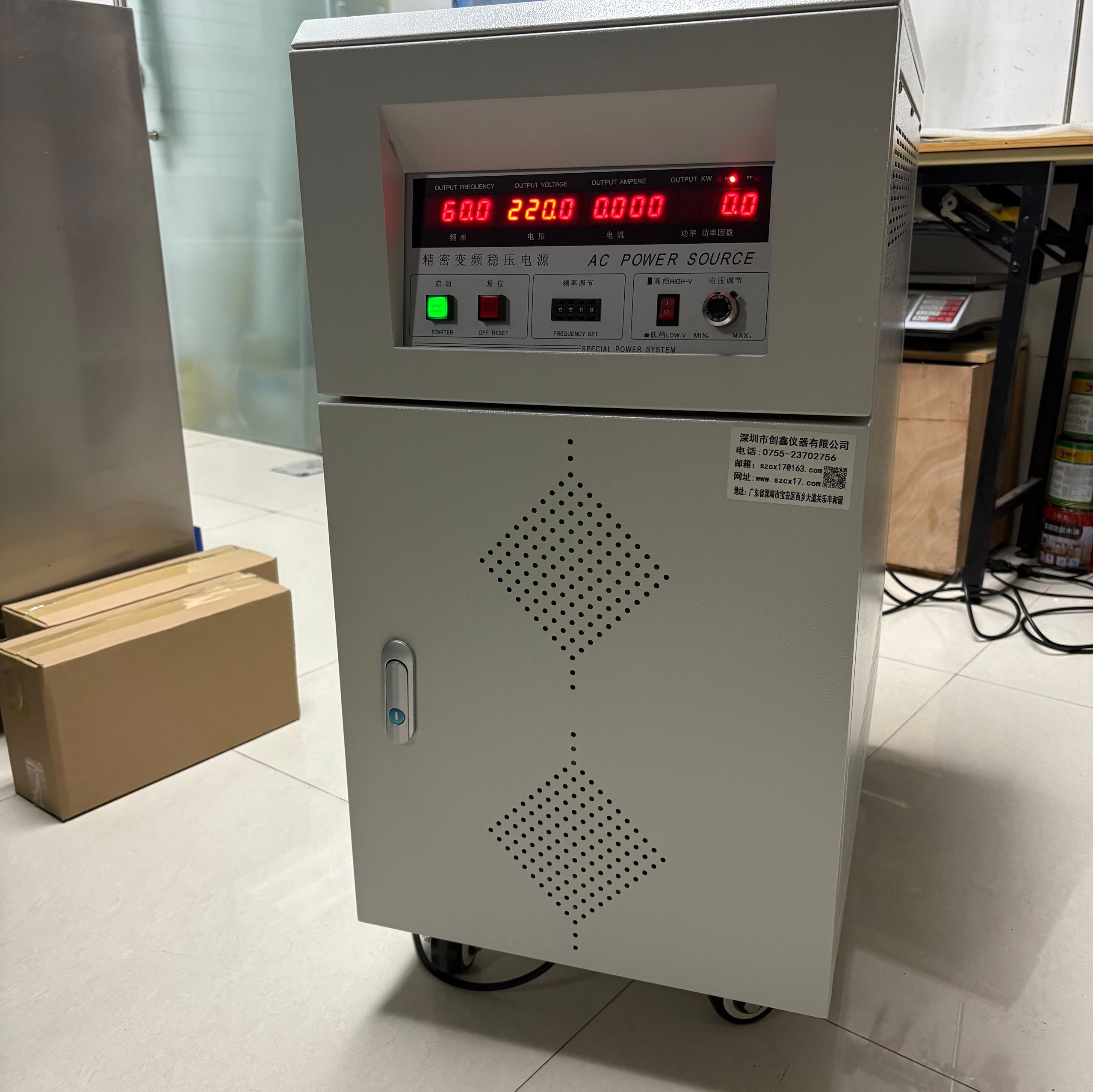 深圳市創(chuàng)鑫儀器有限公司成立于2013年,注冊(cè)資本500萬(wàn)元,是一家專業(yè)從事于檢測(cè)試驗(yàn)設(shè)備的高科技生產(chǎn)企業(yè)。公司主要生產(chǎn)、設(shè)計(jì)和銷售電子電器產(chǎn)品性能測(cè)試設(shè)備!公司設(shè)有完善的標(biāo)準(zhǔn)測(cè)試實(shí)驗(yàn)室、擁有數(shù)十臺(tái)國(guó)外先進(jìn)的實(shí)驗(yàn)設(shè)備,為產(chǎn)品試驗(yàn)、檢驗(yàn)提供可靠的品質(zhì)保證。 產(chǎn)品可通過華南計(jì)量院、廣州廣電計(jì)量院、廣州賽寶計(jì)量院等國(guó)內(nèi)權(quán)威機(jī)構(gòu)認(rèn)證。