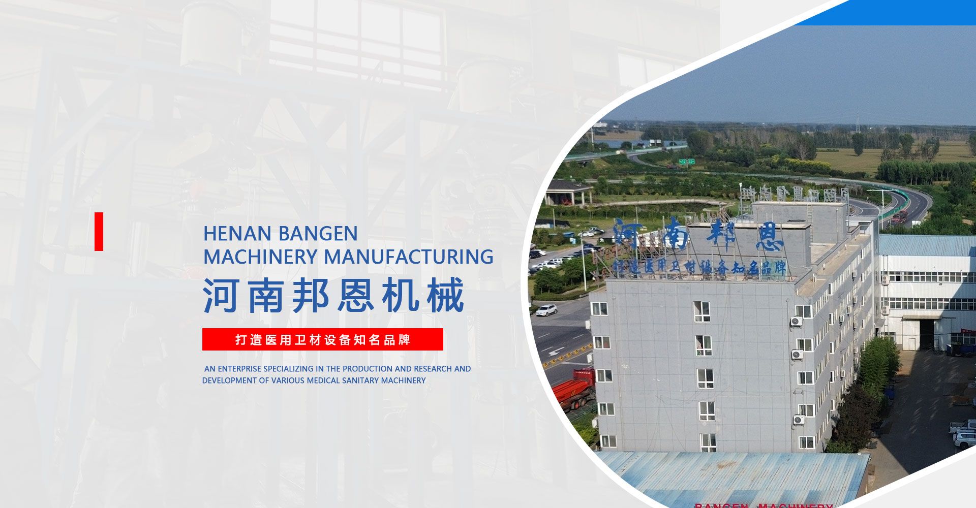河南省邦恩機械制造有限公司,是生產(chǎn)和研發(fā)各種醫(yī)用衛(wèi)材機械的企業(yè),是經(jīng)國家相關(guān)部門批準注冊成立的公司,目前生產(chǎn)的衛(wèi)材機械有五十多個種類。 公司位于河南省長垣縣滿村工業(yè)區(qū),占地30多畝,目前擁有員工210多人,其中工程技術(shù)人員80余人。公司位于308省道旁,西臨G45高速公路,南靠新菏鐵路,交通便利。邦恩從2005年開始生產(chǎn)醫(yī)用機械設(shè)備,經(jīng)過十五年的技術(shù)開發(fā)和生產(chǎn)實踐,目前已經(jīng)成為衛(wèi)材機械設(shè)備行業(yè)中具有完整生產(chǎn)體系和批量生產(chǎn)規(guī)?;a(chǎn)企業(yè)。