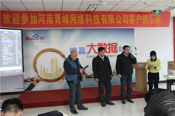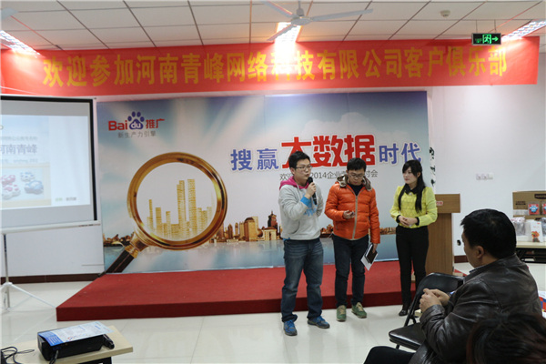 2014年3月12日下午兩點半,2014Q1網(wǎng)站客戶俱樂部會議在青峰網(wǎng)絡(luò)大會議室召開,網(wǎng)站客服的工作人員早已準(zhǔn)備好精致小食,布置好會場等待著客戶的到來。本次會議主要分為主題演講和抽獎環(huán)節(jié)。