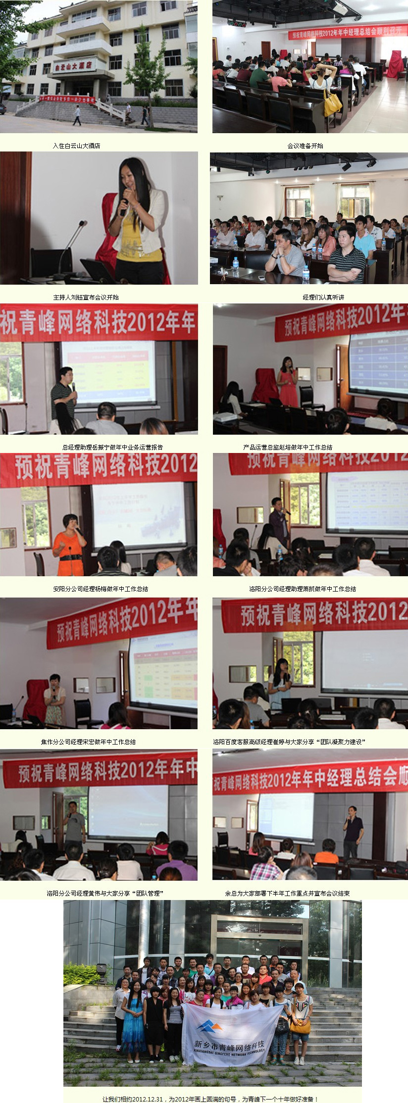 2012年,青峰網(wǎng)絡(luò)科技年中經(jīng)理總結(jié)會報道