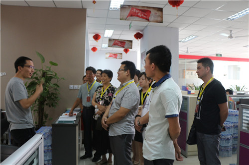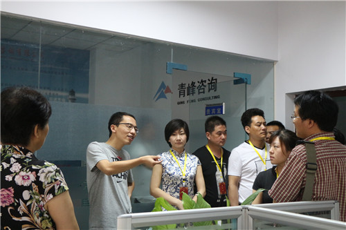 在公司CEO余進(jìn)先生、行政部經(jīng)理付士奇先生的帶領(lǐng)下,朱會長及會員們參觀了青峰網(wǎng)絡(luò)的所有辦公場所及旗下子公司。在參觀過程中,余總向大家介紹了公司的發(fā)展歷程和公司生態(tài)鏈,著重講解了公司文化和各項福利政策,朱會長及會員們表現(xiàn)出極高的興趣和贊同。