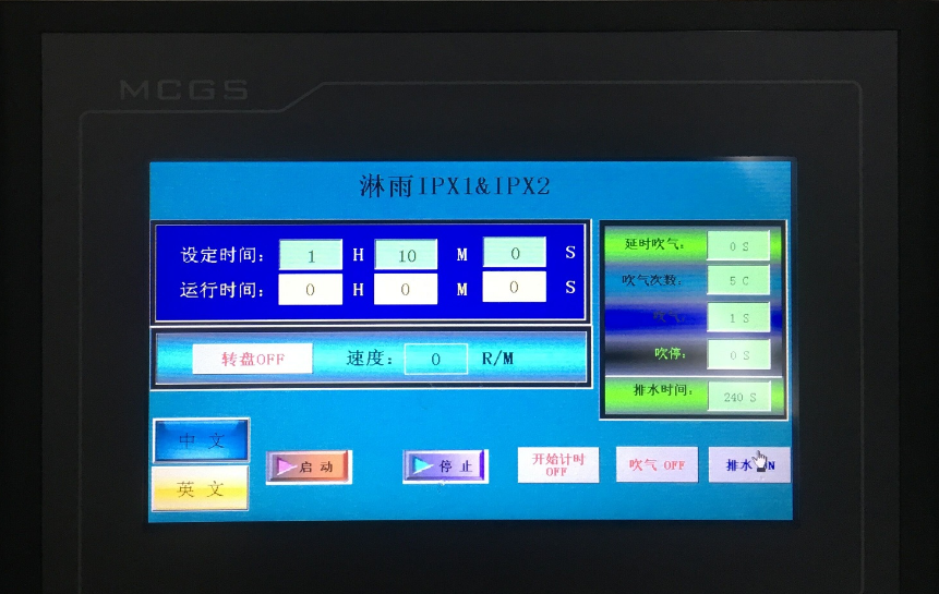 IPX12垂直滴雨試驗機中英文操作界面