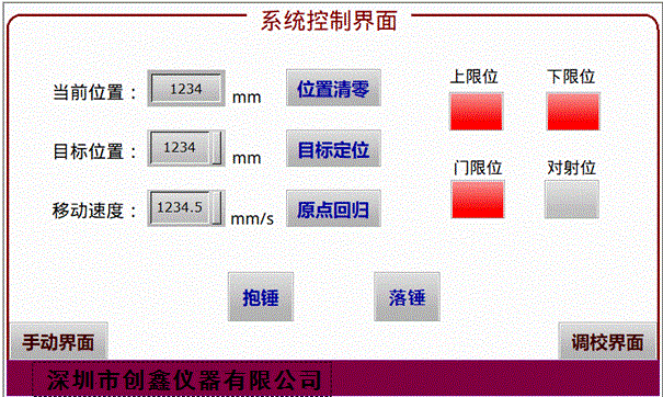 傳動系統通過PLC控制,帶動繼電器進行電機的正反轉,達到錘提升下降到預置高度。