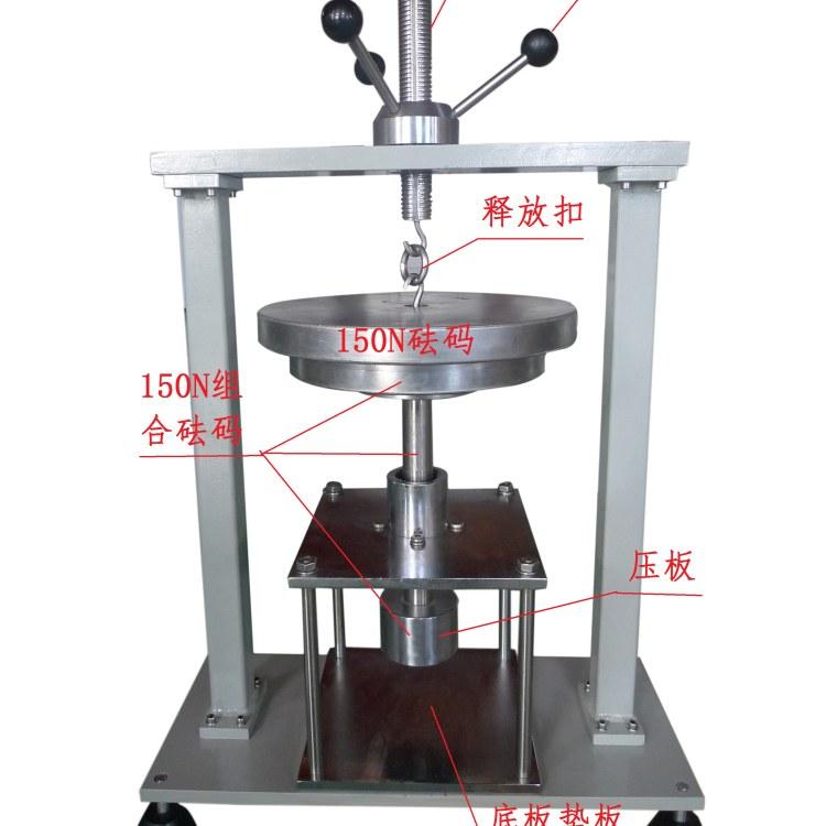 結(jié)構(gòu)及功能:采用砝碼施力,150N及300N為疊加施力。試驗時應(yīng)保持溫度在23±2°C進(jìn)行,按標(biāo)準(zhǔn)圖8a及b兩個位置對試樣施加300N壓力各1min。